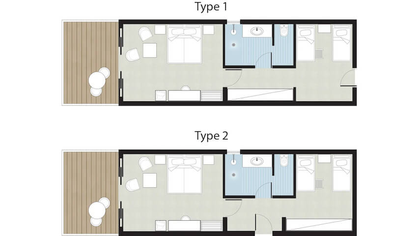 Marin Bay Családi bungalow (kétlégterű) tengerparti kilátással – 35 m2