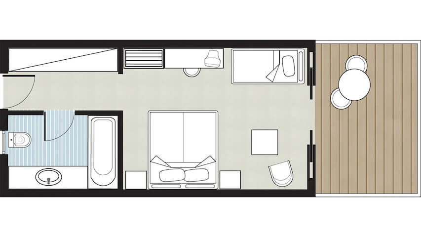 Bungalow oldalsó tengerparti kilátással – 26 m2