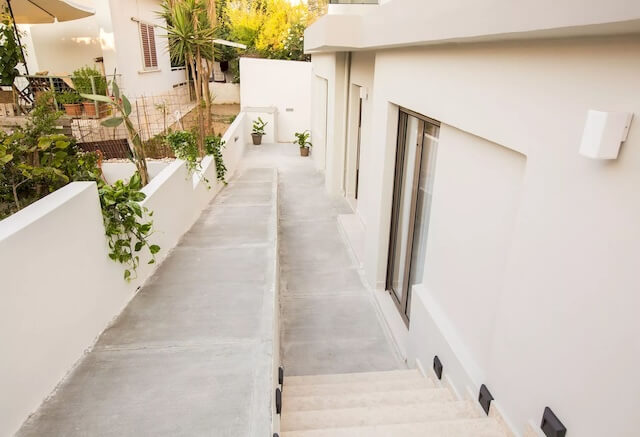 A foglalható lakosztályok, a képen látható módon, félszuterén, vagy magas földszinti elhelyezkedéssel rendelkeznek.