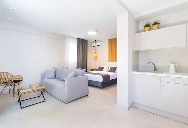 A Calmare Suites kitűnő választás, ha a tenger közelsége fontos számodra és szereted a modern, letisztult apartmanokat.
